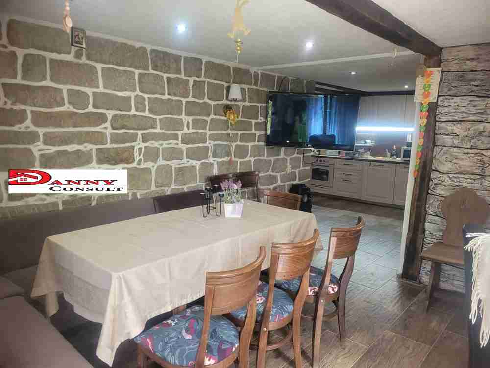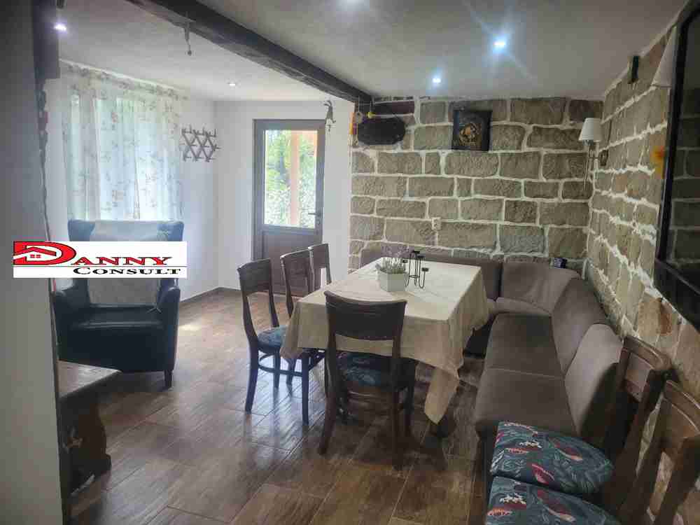 Имотът е със РЗП от 104 кв.м, гредоред и има следното разпределение: първо ниво трапезария с кухненска част, мокро помещение и баня с тоалетна, външно стълбище води до основният етаж, където са поместени входно антре, три спални, баня с тоалетнаи и веранда. Къщата е изцяло ремонтирана и обзаведена, готова за незабавно нанасяне, дограмата е PVC, подовите настилки са дървено дюшеме и теракот, за отопление е монтирана камина на дърва, с водна риза, сградата е с външна топлоизолация. Дворът е 929 кв.м., от които 498 кв.м. в регулация и 431 кв.м. земеделска земя, терасиран и ограден, в него е разположена и BBQ зона. Достъпът до имота е по асфалтов път.